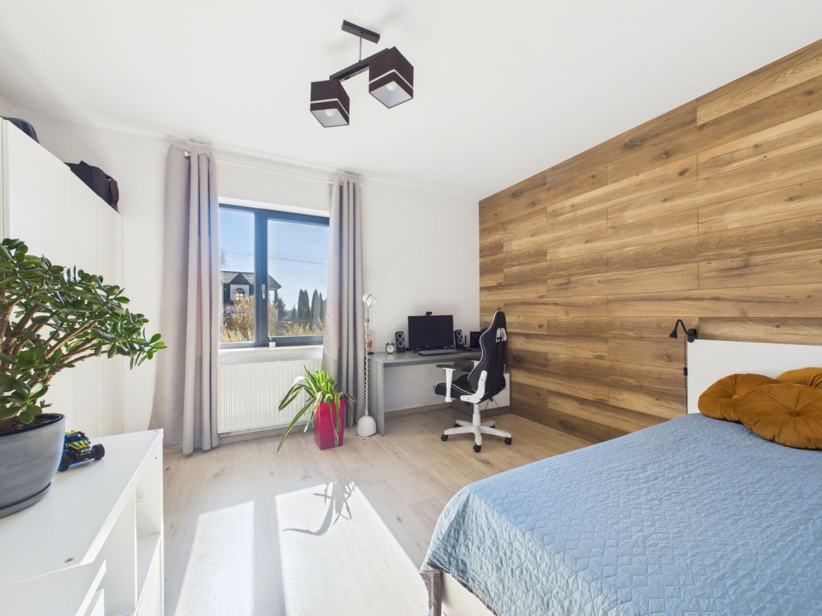 Zamiast porannego pośpiechu wyobraź sobie chwilę spokoju z kawą w dłoni, śpiew ptaków za oknem i zapach lasu tuż obok. Wieczorem ogień trzaskający w kominku, oraz piękny zachód słońca za oknem. Ten dom daje przestrzeń, w której naprawdę można zwolnić, odpocząć i cieszyć się codziennością - blisko przyrody, ale wciąż niedaleko miasta.