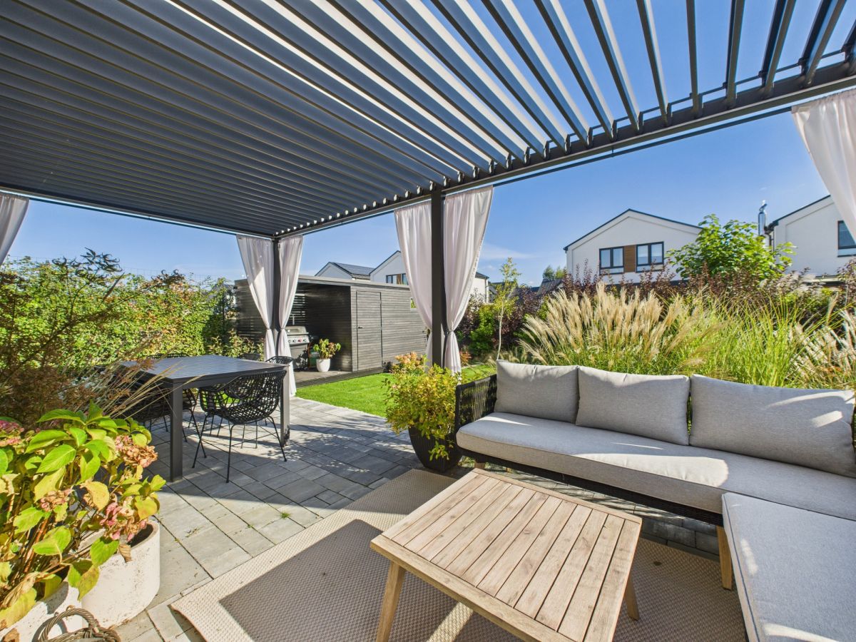 Na sprzedaż połowa bliźniaka o powierzchni ok. 155 m², położona na pięknie zagospodarowanej działce 500 m². To nie jest zwykły ogród - to bajkowa przestrzeń pełna zieleni, kwiatów i dopracowanych detali, idealna do relaksu, rodzinnych spotkań i letnich wieczorów przy grillu.